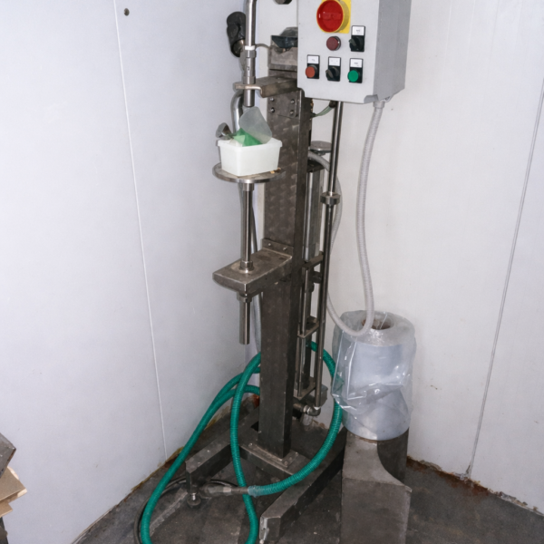 The machine is suitable for dairy production lines where cheese or similar products need to be dispensed into containers or packaging. The stainless steel construction ensures hygienic operation in food processing environments.