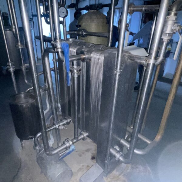 Used industrial plate heat exchanger designed for heating and cooling of milk and liquid food products in dairy and food processing plants.