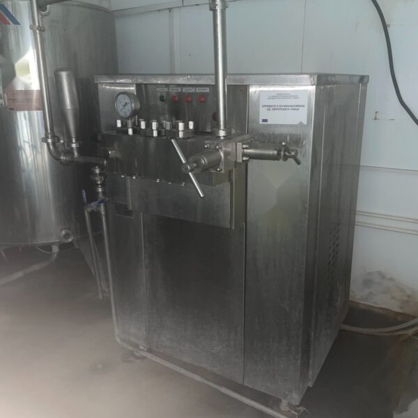 Used industrial milk homogenizer manufactured by PIM Ltd., Bulgaria, designed for professional dairy processing and homogenization of milk and liquid dairy products.