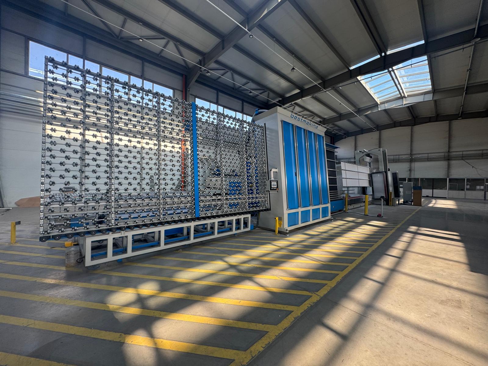 The machine is designed for professional glass processing companies and ensures high washing quality, efficient drying, and reliable operation.