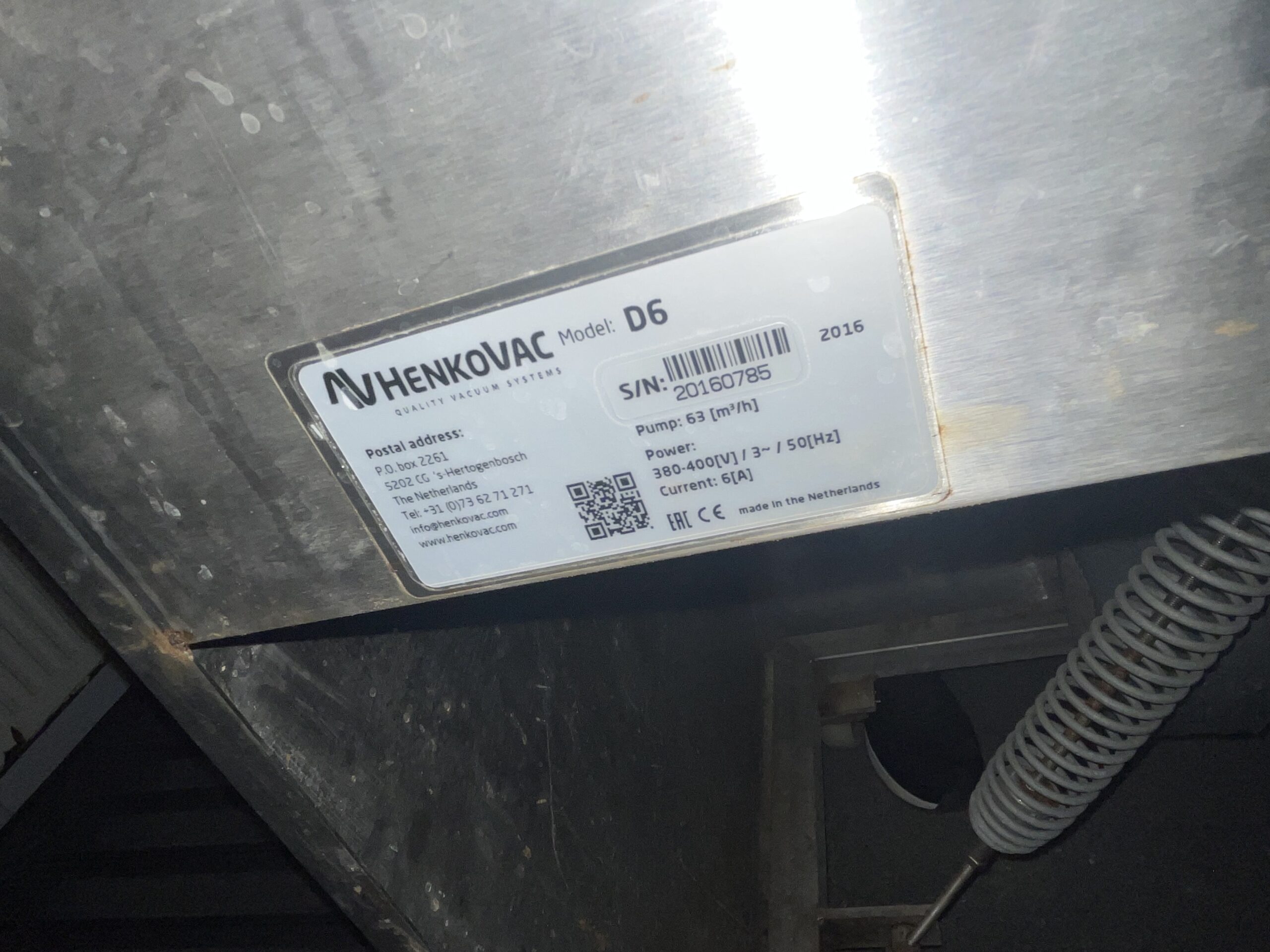 Vacuum pump capacity: 63 m³/h